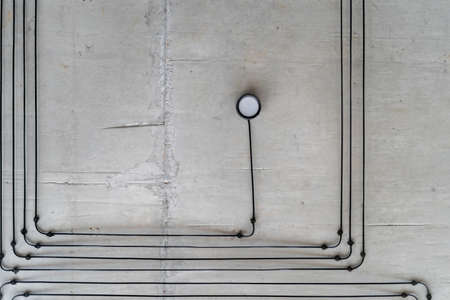 Ceiling lighting on concrete wall during renovation in new apartment. Contemporary electricity installation. Loft styled house renovation process