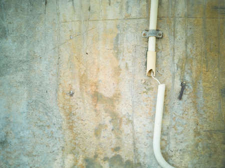 Pipe of power Wire damaged on the cement wall and Can be dangerous, With copy space.