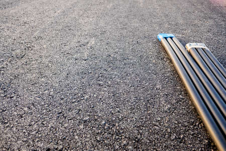 Blurry picture of electrical conduit and cabling. Blurry image for construction background. The rows of electrical conduit and signal cables in the parking building.
