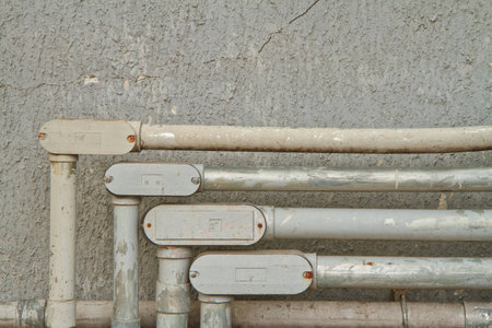 Electrical conduit for cable routing between electrical distribution panel with Galvanized electrical junction box and Pipe of electricity line installed in buildings