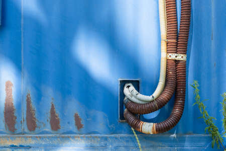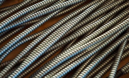 Corrugation for electrical wiring. Hidden wires. Corrugated hose. Winding to protect against damage to electrical wiring.