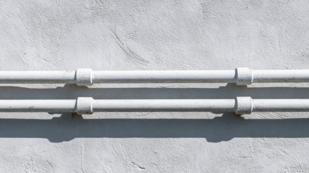This image showcases two white pipes against a textured wall, creating shadows. The minimalist composition emphasizes simplicity and industrial charm for various projects.