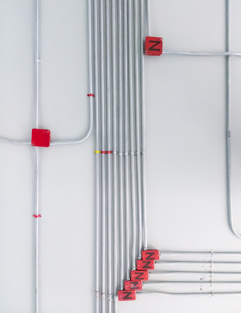 Electrical wiring work in a steel pipe of a house with a loft style decoration design.