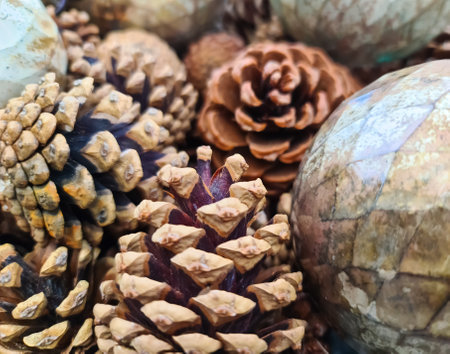 Festive Flair: Captivating Christmas Composition in a Stunning Pattern of Pine Cones and Decorations