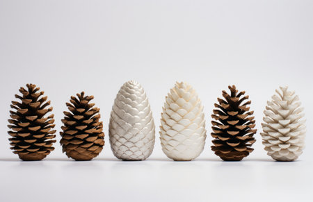 Pristine Pinecones: Captivating Top-Down View Amidst Serene White Background - Perfect for Creative Copy Space