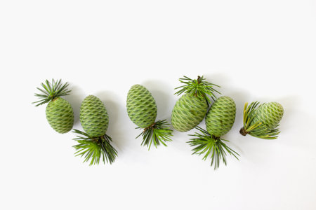 small young green fir cones on white isolated background