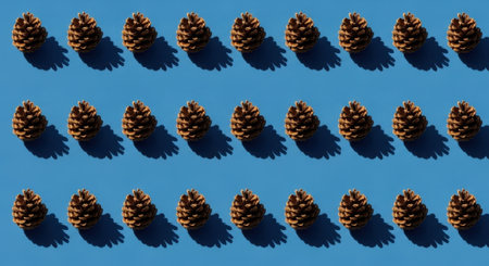 A repeating pattern of pine cones arranged on a vibrant blue background, creating a visually appealing composition.