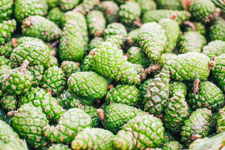 Green young fir tree cones prepared for homemade syrup cooking.