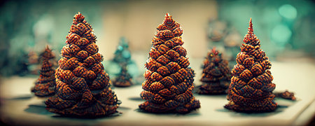 Pinecone Christmas trees banner, Christmas artwork background, december generative art, winter illustration