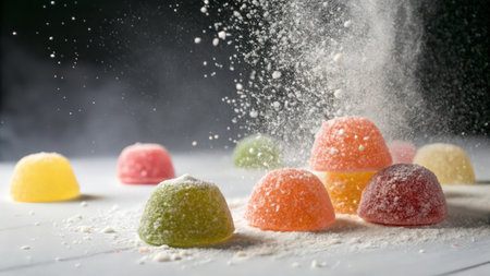 Macro close up portrait of colorful candy sprinkles, studio lighting, selective focus