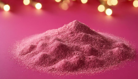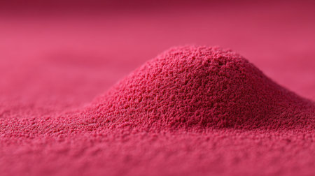 Close-up view of a mound of vibrant pink powder, showcasing its fine texture, suitable for use in artistic projects, backgrounds, or creative designs.