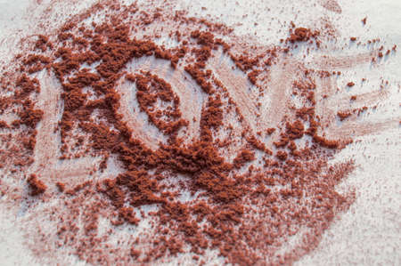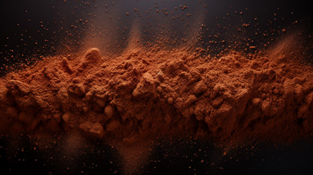 Chocolate powder on a brown background, studio photography, healthy food, fair trade