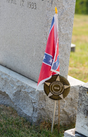 Confederate battle flag at grave of Confederate soldier near Beaufort South Carolina.
