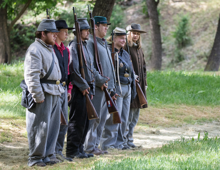 Confederate soldiers at a Civil War reenactment at Hawes Farm in Anderson, California.