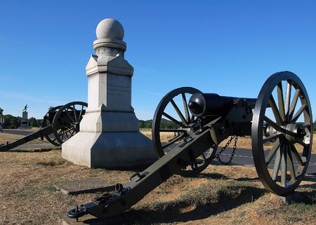 Old cannons beside a monument in Gettysburg