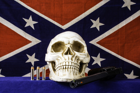 human skull confederate flag and pistol