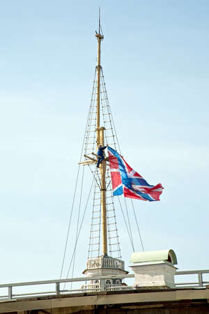 Russian traditional fortress flag. St Petersburg city, Russia.