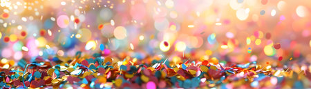 Vibrant showing vibrant confetti and bokeh lights creating a festive and celebratory atmosphere with a shallow depth of field effect keywords: confetti,...