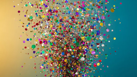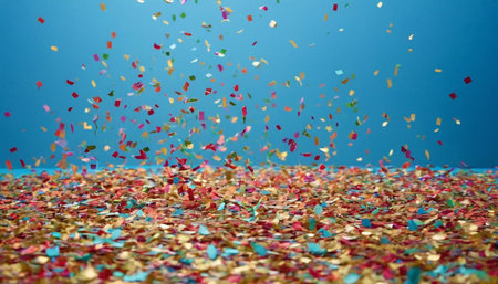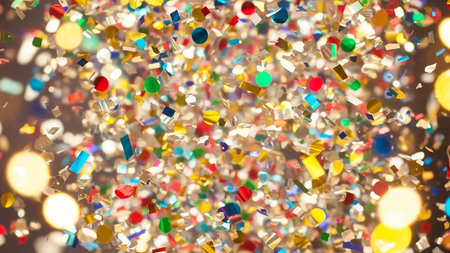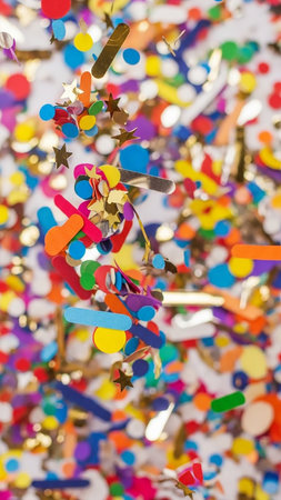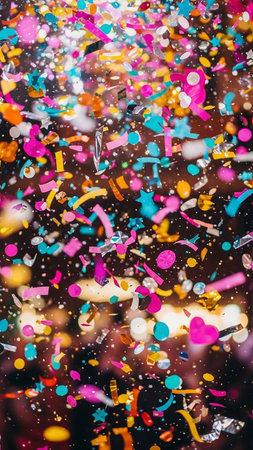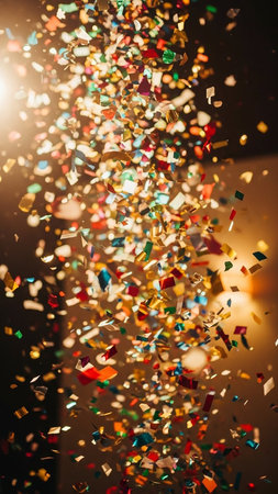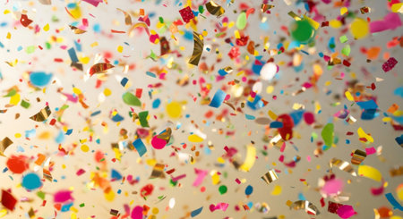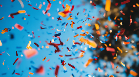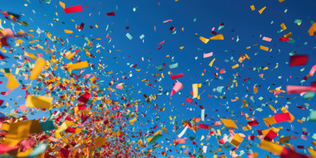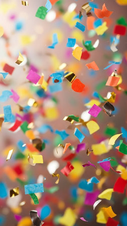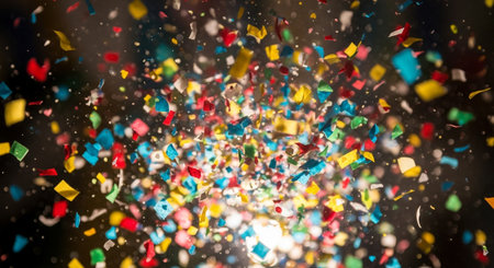 Vibrant and colorful confetti fills the air in a joyful celebration, creating a lively atmosphere perfect for parties and festive events. A visual delight!