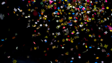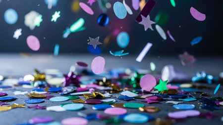 Colorful confetti scattered on a dark background. Perfect for celebration themes.