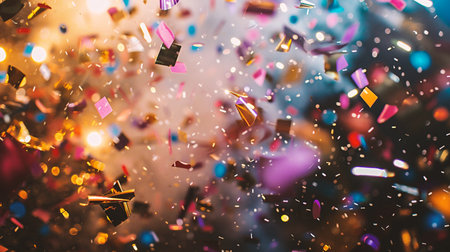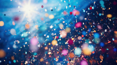 Celebration showing vibrant multicolored confetti and bokeh lights exploding in a festive celebration creating a dynamic and joyful atmosphere for parties and...