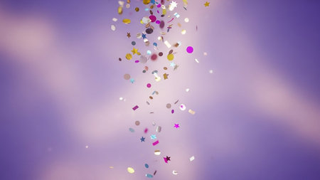 Colorful confetti flying in the air with bokeh background