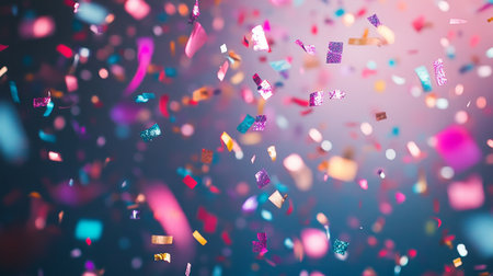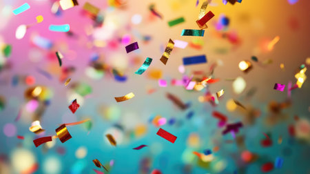 A vibrant display of colorful confetti falling gracefully against a softly blurred background, perfect for conveying joy and celebration in various events.