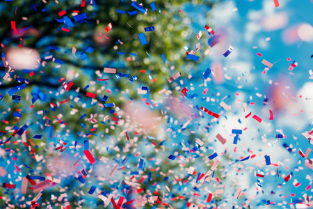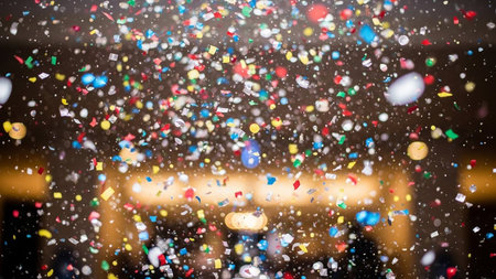 Bright confetti floats joyfully in the air adding excitement to a lively celebration filled with cheer.
