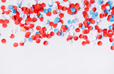 4th of July American Independence Day, colorful circle shape confetti from shredded paper , decorations for fourth july with copy space