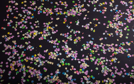 Confetti festive background. Texture of colored circles made of paper, closeup.