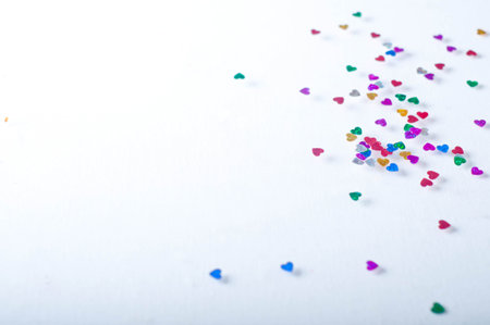 A vibrant image of colorful confetti scattered on a white background. Perfect for celebratory occasions.