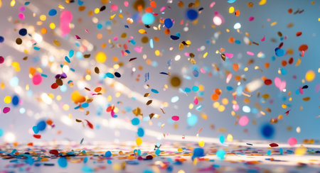 Vibrant confetti falls gracefully on a soft focused background, creating a joyful and festive atmosphere ideal for celebrations and special events.