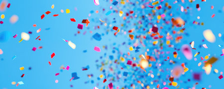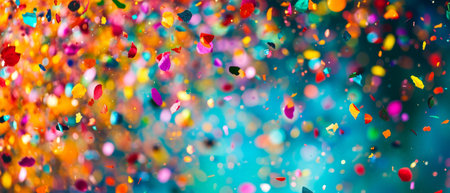 Colorful confetti dances in a blurred background, creating a festive and joyful atmosphere. Ideal for themes related to celebrations and special occasions.