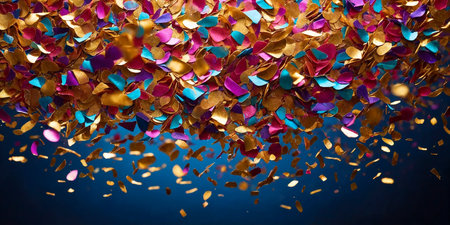 Festive confetti glitters in a dynamic celebration background