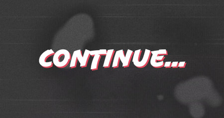 Displaying bold CONTINUE... text on screen, with red drop shadow on static glitch effect background. Digital interface, gaming, retro, glitch, suspense, technology, dramatic