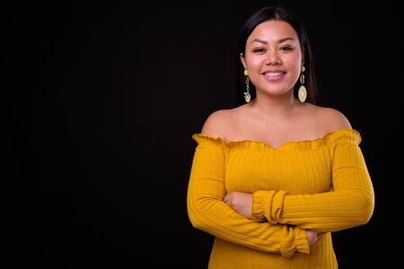 Beautiful overweight Asian woman wearing off shoulder dress