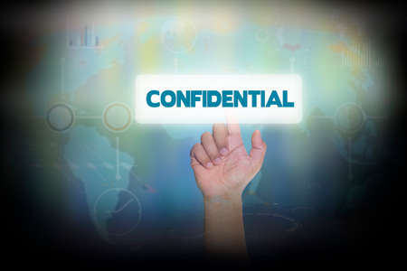 Businessman pressing button on touch screen interface and select CONFIDENTIAL. Business concept