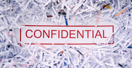 Keep it confidential. Studio shot of the word CONFIDENTIAL surrounded by shredded paper.