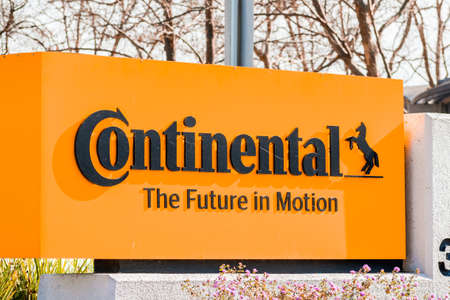 Feb 27, 2020 San Jose / CA / USA - Close up of Continental sign at their headquarters in Silicon Valley; Continental AG, commonly known as Continental, is a German automotive manufacturing company