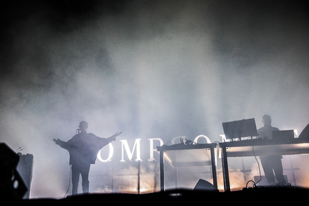MOSCOW, RUSSIA - JUNE 29, 2014 - Electronic music project Moderat performing live at Park Live festival at at the National Exhibition Centre on June 29, 2014 in Moscow, Russia