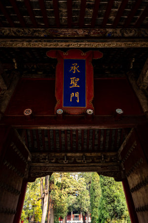 Entrance Gate Confucius Grave Yard Qufu, Shandong Province, China The Chinese characters say that this is a very holy forest.