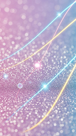 Glitter showing sparkling glitter background with soft pastel bokeh and swirling neon light streaks in pink blue and yellow hues keywords: glitter, sparkling,...