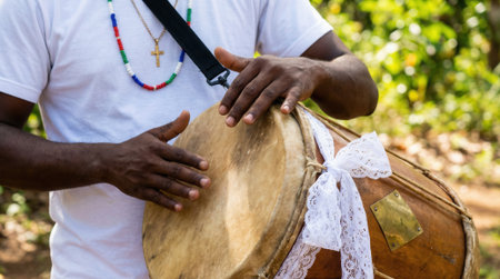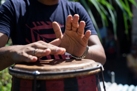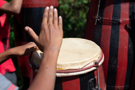 Cultural Heritage Unleashed Drumming Hands Create Rhythmic Vitality and Vibrant Community Spirit