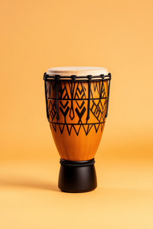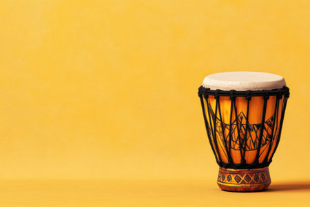Djembe drum on yellow background with copy space for text