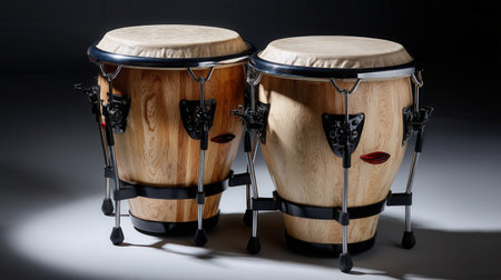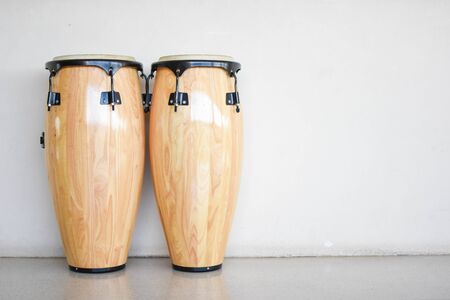 two congas in front of a wall