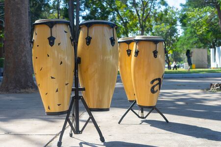Some drums called atabaque in Brazil used during a typical Umbanda ceremony, an Afro-Brazilian religion where they are the main instruments
