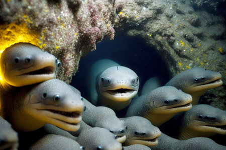 The Lamprey Pair - Delving into the Fascinating Existence of Two Primitive Aquatic Predators. Generative AI