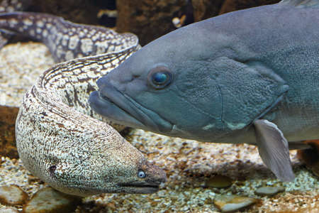 Greece Gournes. Murena and grouper in an aquarium in Crete