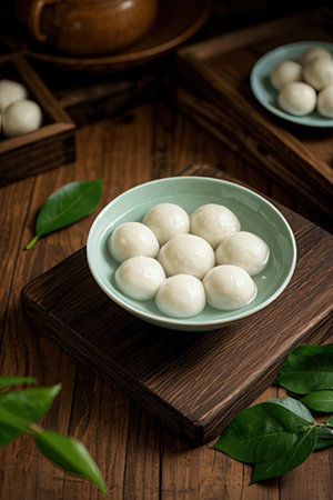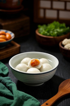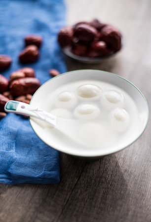 Thai dessert, sweet sticky rice ball with coconut milk in bowl