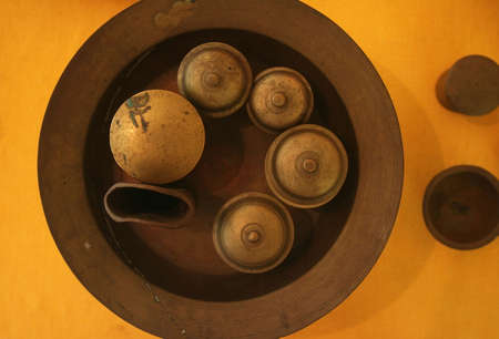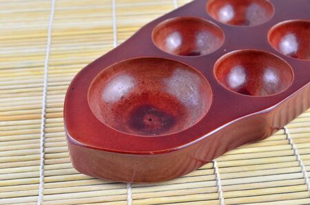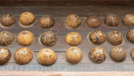 Close-up of a congkak or congklak which is a mancala game of Malay origin played in Malaysia, Philippines, Singapore, Indonesia, Brunei and Thailand